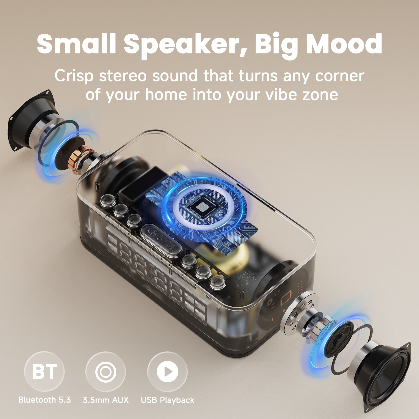 【High-Quality Speaker with Bluetooth, AUX & USB Playback】